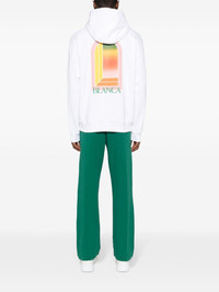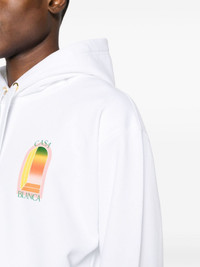 Gradient L'Arche hoodie The Gradient L'Arche organic cotton hoodie boasts Casablanca's signature arch print. The motif is 'representative of the rich exchanges across cultural disciplines in African art, music and film.' Highlights - White - Organic cotton - Jersey texture - Drawstring hood - Logo print at the chest - Long sleeves - Ribbed cuffs and hem - Front pouch pocket - Logo print to the rear - Straight hem Imported Composition Organic Cotton 100% SIZE & FIT Model measurements Height 6 ft 2 in(1.89 m) Bust/Chest 39.76 in(101 cm) Hips 37.4 in(95 cm) Waist 29.92 in(76 cm) FittingInformation Designed for a regular fit, offering a comfortable loose fit throughout the body Made from a midweight non-stretch fabric, this piece offers minimal elasticity when worn This piece fits true to size – take your usual size Washing instructions Machine Wash