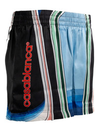 graphic-pattern silk shorts Highlights - Light blue - Graphic pattern - Elasticated waistband - Side seam pockets - Silk - Casablanca logo Made in Italy Composition Silk 100% Washing instructions Read Manufacturer Guidelines