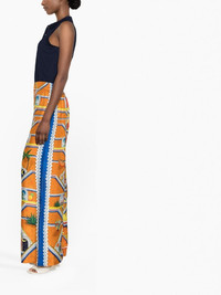 Escalier Infini silk wide-leg trousers Showing the brand's love for bold prints, these wide-leg trousers from Casablanca are enhanced by a multicoloured graphic print all over. They're crafted from soft silk and feature a relaxed cut. Highlights - Orange - Silk - All-over graphic print - High waist - Wide leg Made in Italy Composition Silk 100% SIZE & FIT Model measurements Height 5 ft 10 in(1.77 m) Bust/Chest 31.49 in(80 cm) Hips 33.85 in(86 cm) Waist 22.44 in(57 cm) FittingInformation This piece fits true to size. We recommend you get your regular size Designed to be fitted at the waist, loose over the leg Made with a lightweight non-stretch fabric