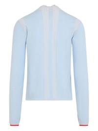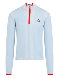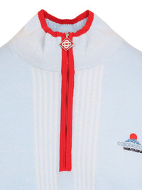 half-zip striped sweater Highlights - Blue - Half zip fastening - Ribbed neckline - Vertical stripes - Embroidered logo - Long sleeves Imported Composition Merino 100% Washing instructions Read Manufacturer Guidelines