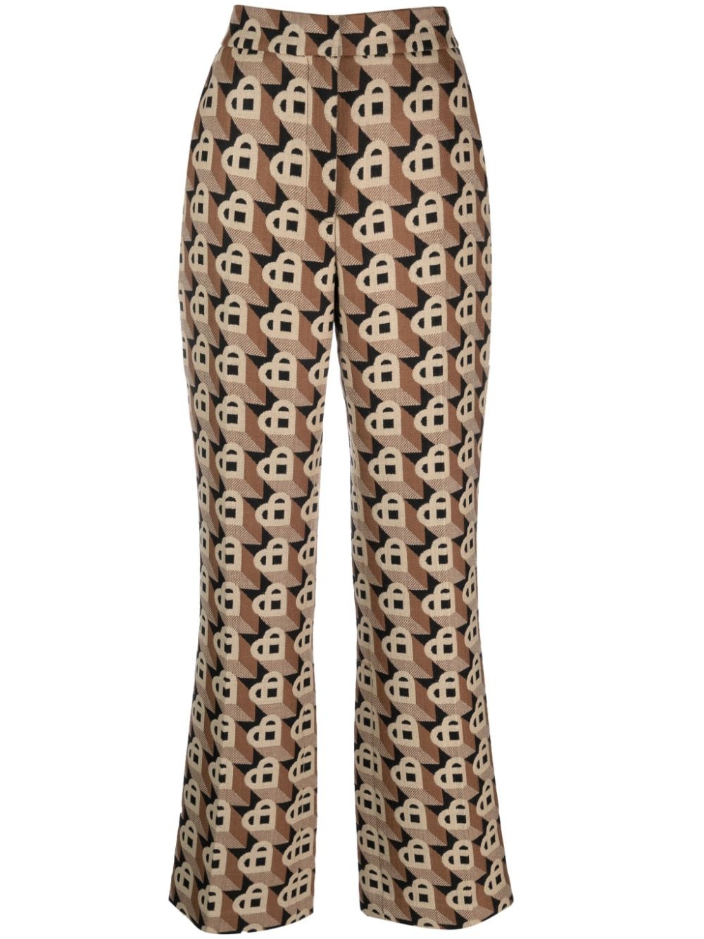 Heart-jacquard virgin-wool trousers These Casablanca trousers are distinguished by their Heart Monogram jacquard pattern in a rich shades of brown. They are crafted from virgin wool to a charming high waisted silhouette. Highlights - Brown - Virgin wool - Full jacquard - Heart monogram motif - High-waisted - Concealed front fastening - Two side slit pockets - Two rear welt pockets - Straight leg Imported Composition Outer: Virgin Wool 99%, Polyamide 1% Lining: Viscose 52%, Cotton 48% SIZE & FIT Model measurements Height 5 ft 11 in(1.8 m) Bust/Chest 31.49 in(80 cm) Hips 36.22 in(92 cm) Waist 25.59 in(65 cm) FittingInformation Designed for a straight-leg fit, these trousers allow for a close fit at the waist and an unrestricted, comfortable fit over the leg Made from a midweight non-stretch fabric This piece fits true to size – take your usual size