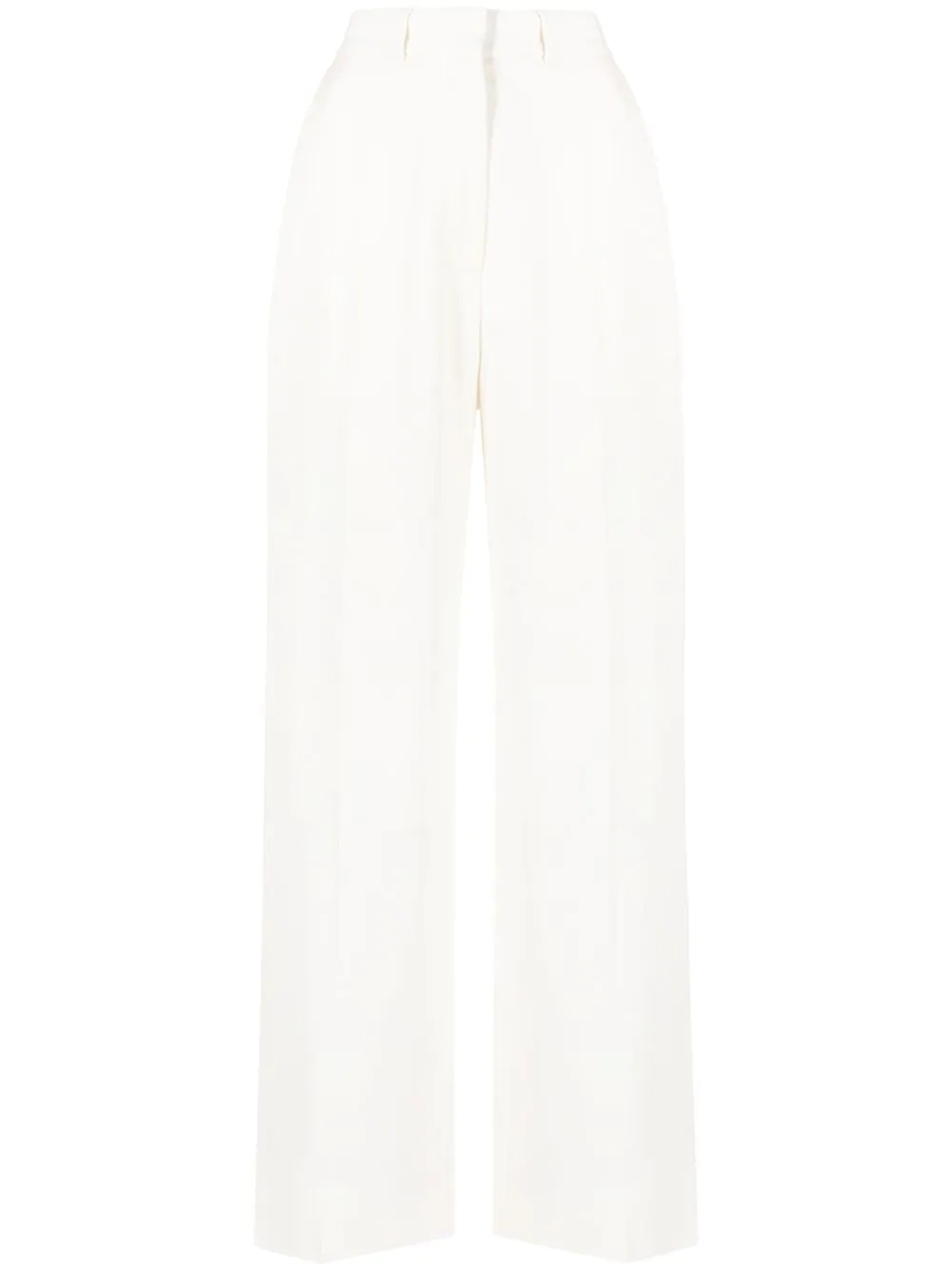 wide-leg tailored trousers Free from any decoration, these tailored trousers from Casablanca arrive in an all-white hue. The pair showcases the brand's minimalist design approach, whilst they are cut to a breezy wide leg. Highlights - Off-white - High-waisted - Concealed clasp fastening - Belt loops - Wide leg - Rear welt pocket - Slip pockets to the sides Imported Composition Outer: Viscose 57%, Silk 43% Lining: Viscose 52%, Cotton 48% SIZE & FIT Model measurements Height 5 ft 10 in(1.79 m) Bust/Chest 31.1 in(79 cm) Hips 35.03 in(89 cm) Waist 24.01 in(61 cm) FittingInformation This piece fits true to size. We recommend you get your regular size Designed to be fitted at the waist and hips, loose over the leg Made with a mid-weight non-stretch fabric