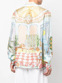 illustration-style print silk shirt multicolour silk illustration-style print Cuban collar concealed front button fastening long sleeves buttoned cuffs decorative button detailing straight hem Made in Italy Composition Silk 100% SIZE & FIT Model measurements Height 6 ft 1 in(1.85 m) Bust/Chest 35.82 in(91 cm) Hips 37.79 in(96 cm) Waist 29.13 in(74 cm)