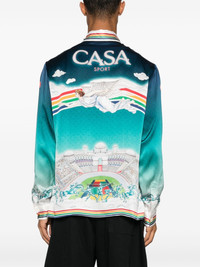 La Deesse Du Stade shirt Highlights - Ocean blue - Silk - Satin weave - All-over graphic print - Concealed front button fastening - Classic collar - Long sleeves - Buttoned cuffs - Straight hem - When buying this unisex item, keep in mind that it is graded in standard men's sizing. Made in Italy Composition Silk 100% SIZE & FIT Model measurements Height 5 ft 10 in(1.77 m) Bust/Chest 31.88 in(81 cm) Hips 36.22 in(92 cm) Waist 24.01 in(61 cm) FittingInformation This unisex piece is designed for a loose fit whether you usually select women's or men's sizes Made from a lightweight non-stretch fabric Washing instructions Do Not Wash/Do Not Dry Clean