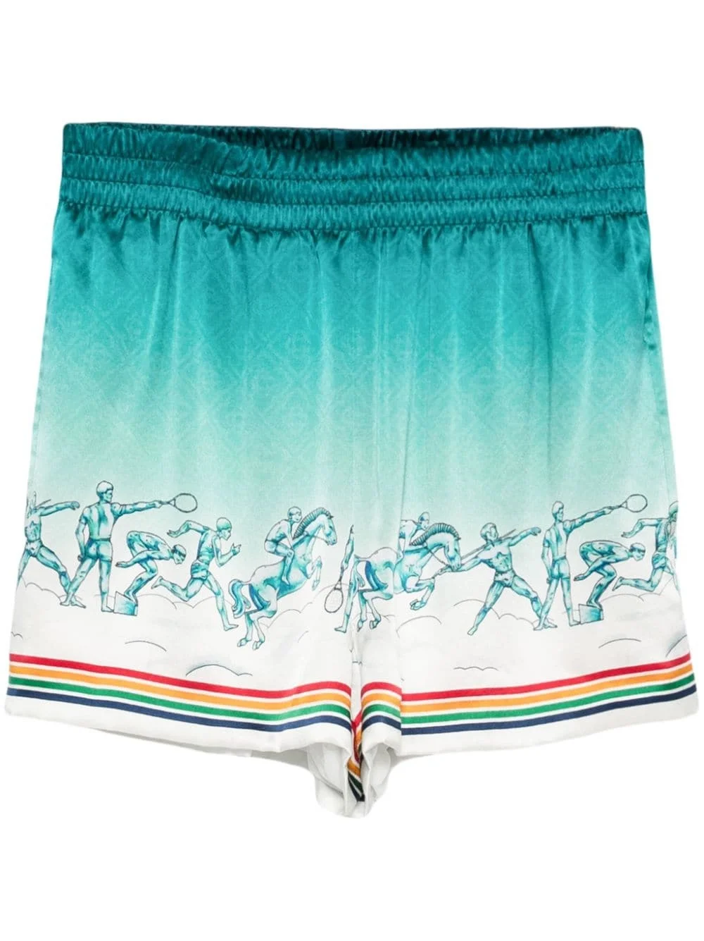 La Deesse Du Stade shorts Highlights - Blue/multicolour - Silk - Satin finish - Pull-on style - Elasticated waistband - Two side inset pockets - Monogram pattern - La deesse du stade print - Rear patch pocket - Full lining Made in Italy Composition Lining: Polyester 100% Outer: Silk 100% SIZE & FIT Model measurements Height 5 ft 11 in(1.8 m) Bust/Chest 33.07 in(84 cm) Hips 37.4 in(95 cm) Waist 25.19 in(64 cm) FittingInformation Designed for a relaxed, roomy fit The elasticated waist allows for a comfortable fit Made from a midweight non-stretch fabric Washing instructions Dry Clean Only