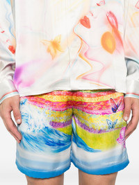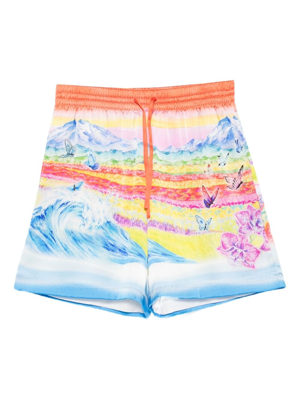landscape-wave print shorts Highlights - Peach - Landscape print - Wave print - Butterfly print - Floral print - Drawstring waist Made in Italy Composition Outer: Silk 100% Lining: Polyester 100% SIZE & FIT Model measurements Height 6 ft 2 in(1.88 m) Bust/Chest 37.4 in(95 cm) Hips 38.58 in(98 cm) Waist 31.1 in(79 cm) Washing instructions Dry Clean Only