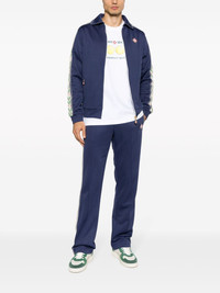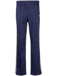 Laurel track pants Casablanca's Laurel track pants elevate the label's sporty aesthetic with their intricate tricot side panels. Crafted in Portugal, they feature an elasticated waistband and boast the signature red diamond logo patch on the left leg. Highlights - Navy blue/multicolour - Side stripe detailing - Knitted panels - Logo patch to the side - Elasticated waistband - Two side zip-fastening pockets - Rear welt pocket - Straight leg Imported Composition Outer: Polyester 54%, Cotton 46% Lining: Polyester 100% SIZE & FIT Model measurements Height 6 ft 1 in(1.86 m) Bust/Chest 37.4 in(95 cm) Hips 36.22 in(92 cm) Waist 29.52 in(75 cm) FittingInformation Designed for a relaxed straight leg, allowing a comfortable and loose fit over the leg The elasticated waist allows for a comfortable fit Made from a midweight non-stretch fabric This piece fits true to size – take your usual size