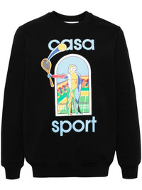 Le Jeu organic-cotton sweatshirt Highlights - Black/multicolour - Organic cotton - Jersey texture - Illustration-style print - Logo print to the front - Crew neck - Drop shoulder - Long sleeves - Ribbed cuffs and hem - Straight hem - French terry lining Imported Composition Organic Cotton 100% SIZE & FIT Model measurements Height 6 ft 2 in(1.87 m) Bust/Chest 36.22 in(92 cm) Hips 37 in(94 cm) Waist 27.95 in(71 cm) Measurement CHEST 44.01 in(111.8 cm) SLEEVE LENGTH 25.98 in(66 cm) LENGTH 27 in(68.6 cm) WAIST 42 in(106.7 cm) Shoulder Width 16.53 in(42 cm) FittingInformation Designed for a relaxed fit, this piece allows for comfort and movement when worn Made from a midweight non-stretch fabric, this piece offers minimal elasticity when worn This piece fits true to size – take your usual size
