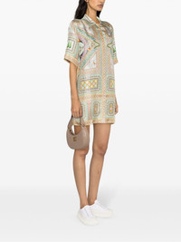 Le Labyrinthe silk shift dress This silk dress from Casablanca showcases the brand's focus on vibrant colours and intricate details. The signature Le Labyrinthe print is adorned with many lively hues, adding a playful touch to the garment. Highlights - Green/multicolour - Silk - Le labyrinthe-print - Shift style - Classic collar - Concealed front button fastening - Short sleeves - Chest patch pocket - Thigh-length - Straight hem Made in Italy Composition Silk 100% SIZE & FIT Model measurements Height 5 ft 10 in(1.78 m) Bust/Chest 31.49 in(80 cm) Hips 35.03 in(89 cm) Waist 23.62 in(60 cm) Measurement SLEEVE LENGTH 10.98 in(27.9 cm) HIPS 42 in(106.7 cm) LENGTH 34.01 in(86.4 cm) WAIST 42 in(106.7 cm) BUST 40.98 in(104.1 cm) FittingInformation Designed for a relaxed fit, this piece allows for comfort and movement when worn Made from a lightweight non-stretch fabric This piece fits true to size – take your usual size