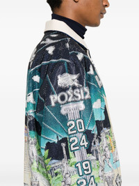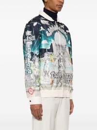 Le Temple Du Sport jacket Highlights - White/multicolour - Front press-stud fastening - Crystal embellishment - Leather trim - Rounded collar - Drop shoulder - Long sleeves - Press-stud fastening cuffs - Logo print to the front - All-over graphic print - Two side welt pockets - Logo print to the rear - Full lining - Elasticated hem Imported Composition Outer: Polyester 100%, Leather 100% Lining: Polyester 100% SIZE & FIT Model measurements Height 6 ft 2 in(1.87 m) Bust/Chest 36.22 in(92 cm) Hips 37 in(94 cm) Waist 27.95 in(71 cm) FittingInformation Designed to be unstructured, offering a loose fit throughout The elasticated hem allows for movement and a comfortable fit Made from a midweight non-stretch fabric