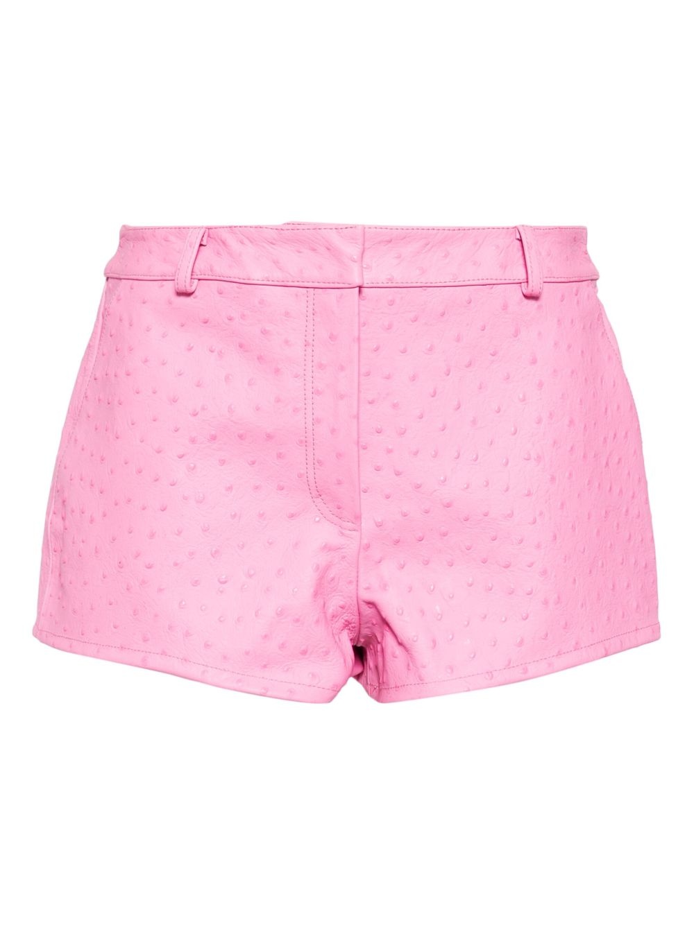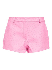 leather shorts Highlights - Light pink - Concealed front fastening - Belt loops - Two side inset pockets - Textured finish Made in Italy Composition Lining: Viscose 100% Outer: Calf Leather 100% SIZE & FIT Model measurements Height 5 ft 10 in(1.77 m) Bust/Chest 30.7 in(78 cm) Hips 35.82 in(91 cm) Waist 21.25 in(54 cm) FittingInformation Designed for a slim fit with a close-fitting internal layer Firm leather offering little flexibility to maintain its durability and sturdiness Washing instructions Dry Clean Only