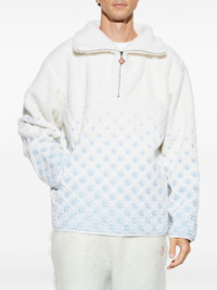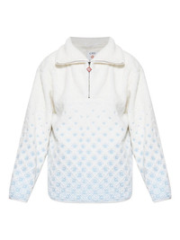 logo-embroidered fleece jacket Highlights - White - Half zip fastening - Light-blue embroidered pattern - Textured fleece - All-over pattern - High neck Imported Composition Acrylic 40%, Wool 32%, Polyester 28% Washing instructions Read Manufacturer Guidelines
