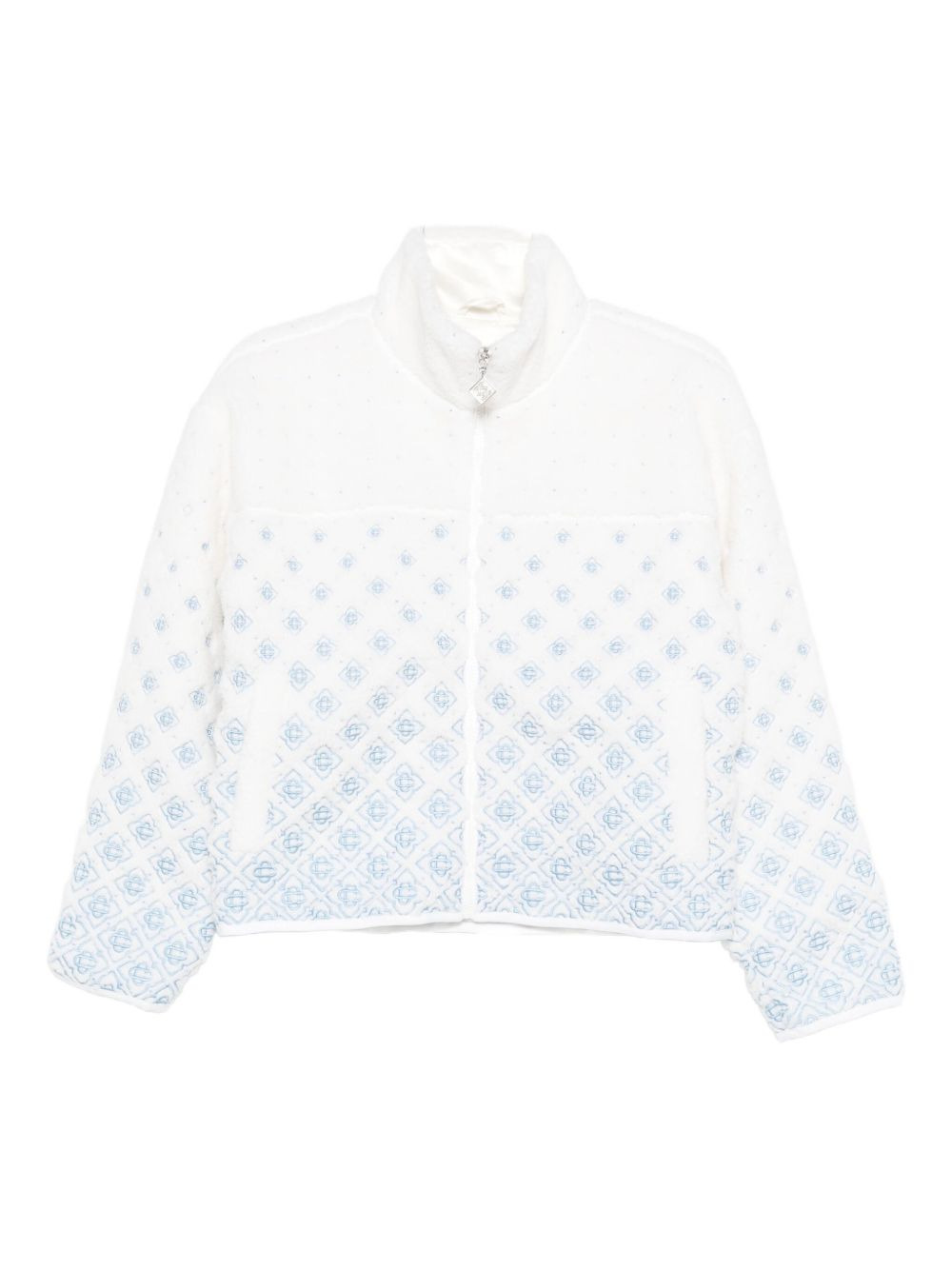 logo-embroidered fleece-texture jacket Highlights - White - All-over logo embroidery - Front zip fastening - High neck - Long sleeves - Elasticated hem Imported Composition Outer: Acrylic 40%, Wool 32%, Polyester 28% Lining: Viscose 100% Fabric 100% Washing instructions Read Manufacturer Guidelines