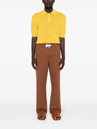 logo-patch organic cotton track pants Trimmed with a botanical embroidery along the sides, these Casablanca track pants are made from brown organic cotton. They're complete with the label's iconic logo. Highlights - Light brown - Organic cotton - Jersey texture - Straight leg - Elasticated drawstring waistband - Logo-embellished side panels - Seam detailing - Logo patch to the front - Rear patch pocket Imported Composition Outer: Organic Cotton 100%, Polyester 100% Lining: Organic Cotton 100% SIZE & FIT Model measurements Height 6 ft 2 in(1.87 m) Bust/Chest 36.41 in(92.5 cm) Hips 37 in(94 cm) Waist 29.52 in(75 cm) FittingInformation Designed for a relaxed straight leg, allowing a comfortable and loose fit over the leg Adjust this piece’s waistband to your preference using the drawstring Made from a midweight non-stretch fabric, this piece offers minimal elasticity when worn This piece fits true to size – take your usual size