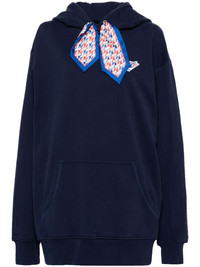 logo patch silk scarf hoodie Highlights - Navy blue - Organic cotton - Slouchy drawstring hood - Drop shoulder - Long sleeves - Scarf detailing - Front pouch pocket - Ribbed cuffs and hem Imported Composition Organic Cotton 100% SIZE & FIT FittingInformation Designed for a relaxed fit, this piece allows for comfort and movement when worn Made from a midweight non-stretch fabric, this piece offers minimal elasticity when worn