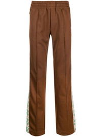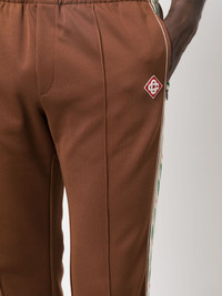 logo-patch straight track pants Casablanca refreshes a sporty silhouette with these track pants. Crafted from a cotton blend, they're decorated with the signature logo patch and side stripe detailing. Highlights - Terracotta brown - Cotton blend - Seam detailing - Logo patch to the side - Side stripe detailing - Elasticated waistband with internal drawstring - Straight leg - Two side zip-fastening pockets - Rear welt pocket - Straight hem Imported Composition Outer: Polyester 54%, Cotton 46% Lining: Polyester 100% SIZE & FIT Model measurements Height 6 ft 0 in(1.84 m) Bust/Chest 35.82 in(91 cm) Hips 37 in(94 cm) Waist 28.34 in(72 cm) FittingInformation Designed for a straight-leg, allowing for an unrestricted and comfortable fit over the leg The elasticated waist allows for a comfortable fit Made from a midweight non-stretch fabric, this piece offers minimal elasticity when worn This piece fits true to size – take your usual size Washing instructions Dry Clean Only