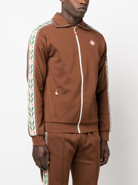Laurel track jacket Casablanca updates the sporty zip-up jacket design for its AW23 collection. In monochromatic cognac brown, an embroidered motif at the sleeves and a logo patch at the chest adorn its long-sleeved silhouette. Highlights - Cognac brown - Logo patch at the chest - Embroidered motif - Spread collar - Front zip fastening - Long sleeves - Two side zip-fastening pockets - Straight hem Imported Composition Lining: Polyester 100% Outer: Polyester 54%, Cotton 46% SIZE & FIT Model measurements Height 6 ft 0 in(1.84 m) Bust/Chest 35.82 in(91 cm) Hips 37 in(94 cm) Waist 28.34 in(72 cm) FittingInformation Designed for a relaxed fit, this piece allows for comfort and movement when worn Made from a midweight non-stretch fabric, this piece offers minimal elasticity when worn This piece fits true to size – take your usual size
