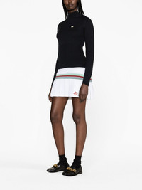 logo-plaque ribbed jumper A minimalist take on Casablanca's athleisure aesthetic, this jumper is cut from black ribbed wool. With a refined high-neck, a logo plaque embellished its long-sleeve silhouette. Highlights - Black - Wool - Ribbed knit - Silver-tone logo plaque - High neck - Long sleeves - Straight hem Imported Composition Wool 100% SIZE & FIT Model measurements Height 5 ft 11 in(1.8 m) Bust/Chest 34.25 in(87 cm) Hips 35.82 in(91 cm) Waist 24.8 in(63 cm) FittingInformation Designed for a slim fit that sits just away from the body offering a close yet comfortable fit Made with a lightweight knit, this piece offers some stretch This piece fits true to size – take your usual size
