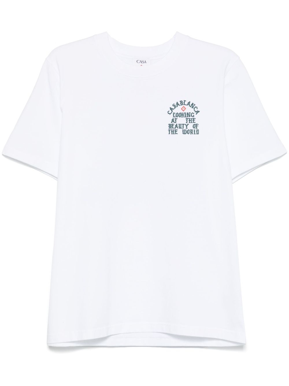 Looking At The Beauty Of The World T-shirt Highlights - White - Crew neck - Short sleeves - Straight hem Imported Composition Organic Cotton 100% SIZE & FIT Model measurements Height 6 ft 1 in(1.86 m) Bust/Chest 36.61 in(93 cm) Hips 37 in(94 cm) Waist 28.74 in(73 cm) Measurement CHEST 48.81 in(124 cm) SLEEVE LENGTH 10.23 in(26 cm) LENGTH 27.55 in(70 cm) Shoulder Width 18.5 in(47 cm) FittingInformation Designed for a relaxed fit, this piece allows for comfort and movement when worn Made from a midweight non-stretch fabric