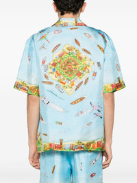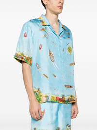 Maison Sur Piloti silk shirt Cut from pure silk, Casablanca's shirt is detailed with an all-over graphic print and a logo print at the chest. Highlights - Blue/multicolour - Silk - Twill weave - All-over graphic print - Logo print at the chest - Camp collar - Concealed front button fastening - Drop shoulder - Short sleeves - Chest patch pocket - Straight hem Made in Italy Composition Silk 100% SIZE & FIT Model measurements Height 6 ft 2 in(1.87 m) Bust/Chest 36.41 in(92.5 cm) Hips 35.43 in(90 cm) Waist 29.52 in(75 cm) Measurement CHEST 44.88 in(114 cm) SLEEVE LENGTH 20.07 in(51 cm) LENGTH 28.5 in(72.4 cm) Shoulder Width 18.89 in(48 cm) FittingInformation Designed for a boxy fit, intended for a loose fit throughout Made from a lightweight non-stretch fabric This piece fits true to size – take your usual size