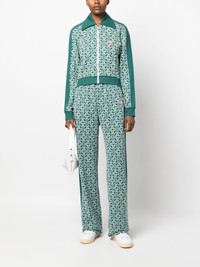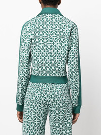 monogram cropped cotton-blend track top This emerald-green track jacket is emblazoned with Casablanca's monogram pattern throughout. It's cut to a modern cropped silhhouette and fitted with a branded pull tab that mirrors the logo patch at the chest. Highlights - Forest green - Cotton blend - Monogram pattern - Spread collar - Front zip fastening - Long sleeves - Straight hem Imported Composition Outer: Rayon 95%, Cotton 78%, Recycled Polyester 22%, Polyester 5% Lining: Polyester 100% SIZE & FIT Model measurements Height 5 ft 11 in(1.8 m) Bust/Chest 31.49 in(80 cm) Hips 36.61 in(93 cm) Waist 24.4 in(62 cm) FittingInformation Designed for a relaxed fit, this piece allows for comfort and movement when worn Made with a midweight knit, this piece offers some stretch This piece fits true to size – take your usual size