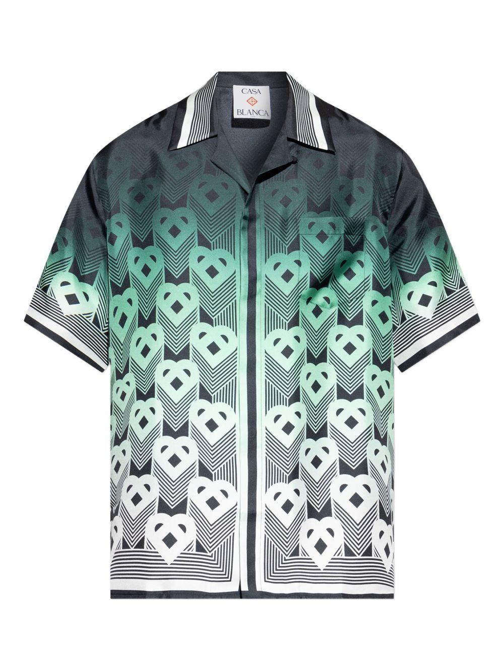 monogram gradient silk shirt Highlights - Green - Gradient pattern - Geometric print - Short sleeves - Cuban collar Made in Italy Composition Silk 100% Washing instructions Read Manufacturer Guidelines