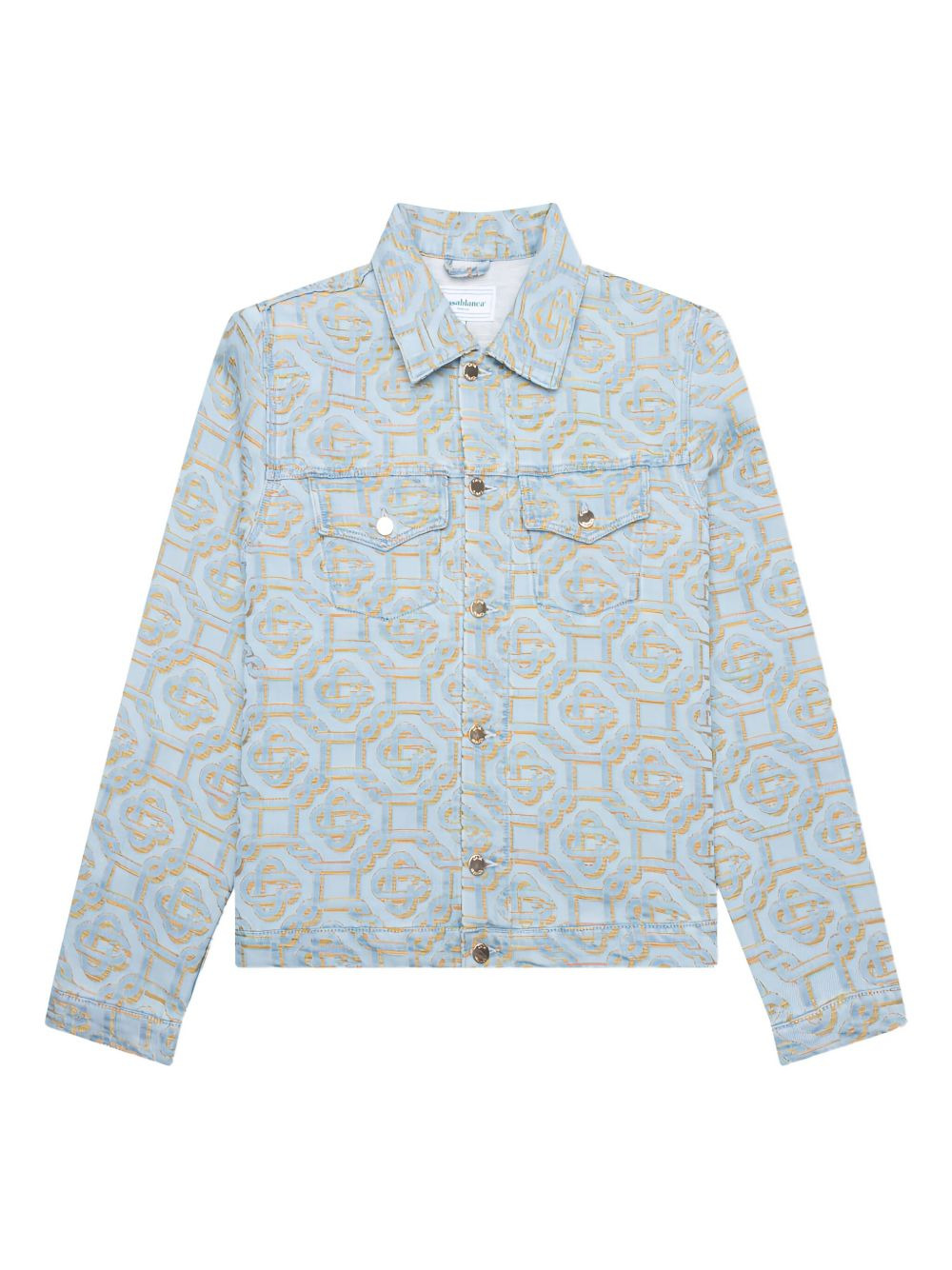 monogram-jacquard denim jacket Highlights - Light blue - Monogram pattern - Button fastening - Classic collar - Long sleeves - Buttoned cuffs Made in United States Composition Cotton 98%, Elastane 2% Washing instructions Read Manufacturer Guidelines