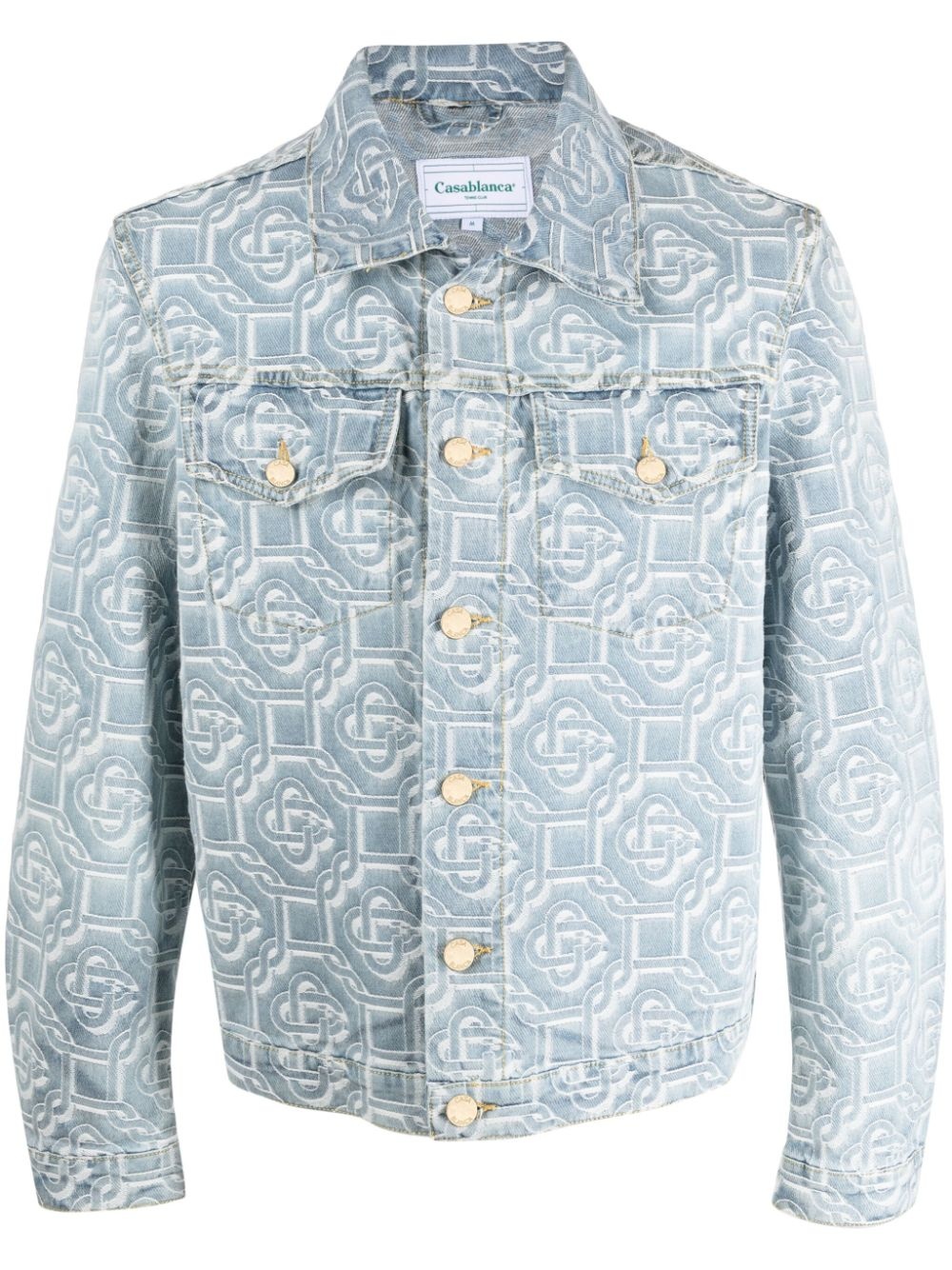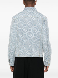 monogram-print denim jacket Highlights - Light blue - Stretch-cotton - Washed denim - Monogram print - Classic collar - Front button fastening - Long sleeves - Buttoned cuffs - Two chest flap pockets - Straight hem Imported Composition Cotton 98%, Elastane 2% SIZE & FIT Model measurements Height 6 ft 2 in(1.88 m) Bust/Chest 35.03 in(89 cm) Hips 35.82 in(91 cm) Waist 27.95 in(71 cm) FittingInformation Designed for a regular fit, allowing for a comfortably loose fit throughout the body Constructed from stretch denim, this piece offers a stretch fit with durability This piece fits true to size – take your usual size Washing instructions Machine Wash