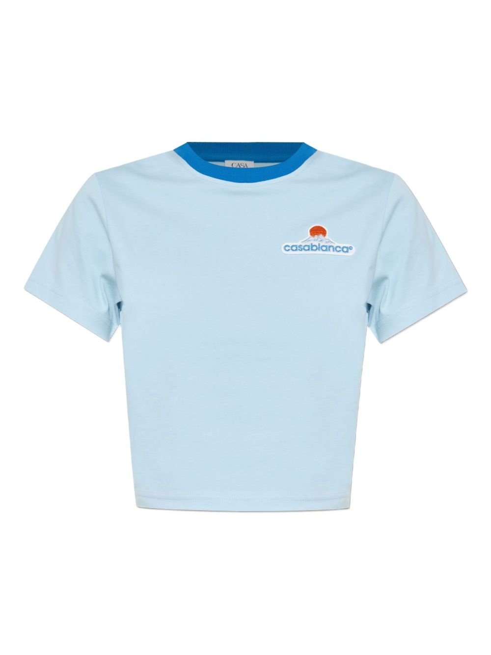 Montagne contrasting-trim cropped T-shirt Highlights - Light blue - Embroidered logo - Short sleeves - Contrast round neckline - Cropped design Imported Composition Cotton 95%, Spandex/Elastane 5%