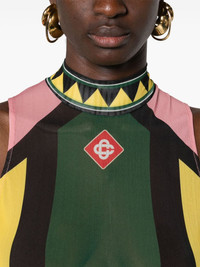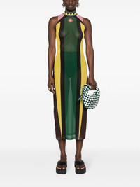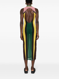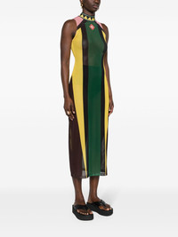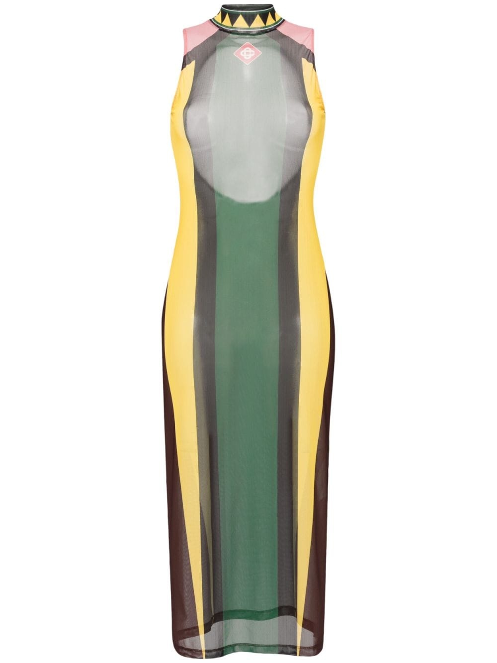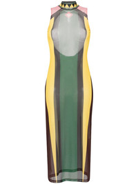 open-back mesh maxi dress Highlights - Green/multicolour - Mesh design - Sheer - Logo print at the chest - Mock neck - Open back - Sleeveless - Fitted waistline - Column silhouette - Straight hem - Long length Imported Composition Recycled Polyester 93%, Elastane 7% SIZE & FIT Model measurements Height 5 ft 10 in(1.77 m) Bust/Chest 32.28 in(82 cm) Hips 35.03 in(89 cm) Waist 25.19 in(64 cm) FittingInformation Designed for a slim fit that sits just away from the body offering a close yet comfortable fit Made from a lightweight stretch fabric, this piece offers elasticity and flexibility when worn This piece fits true to size – take your usual size Measurement HIPS 34.01 in(86.4 cm) LENGTH 47.99 in(121.9 cm) WAIST 24.01 in(61 cm) BUST 30 in(76.2 cm)