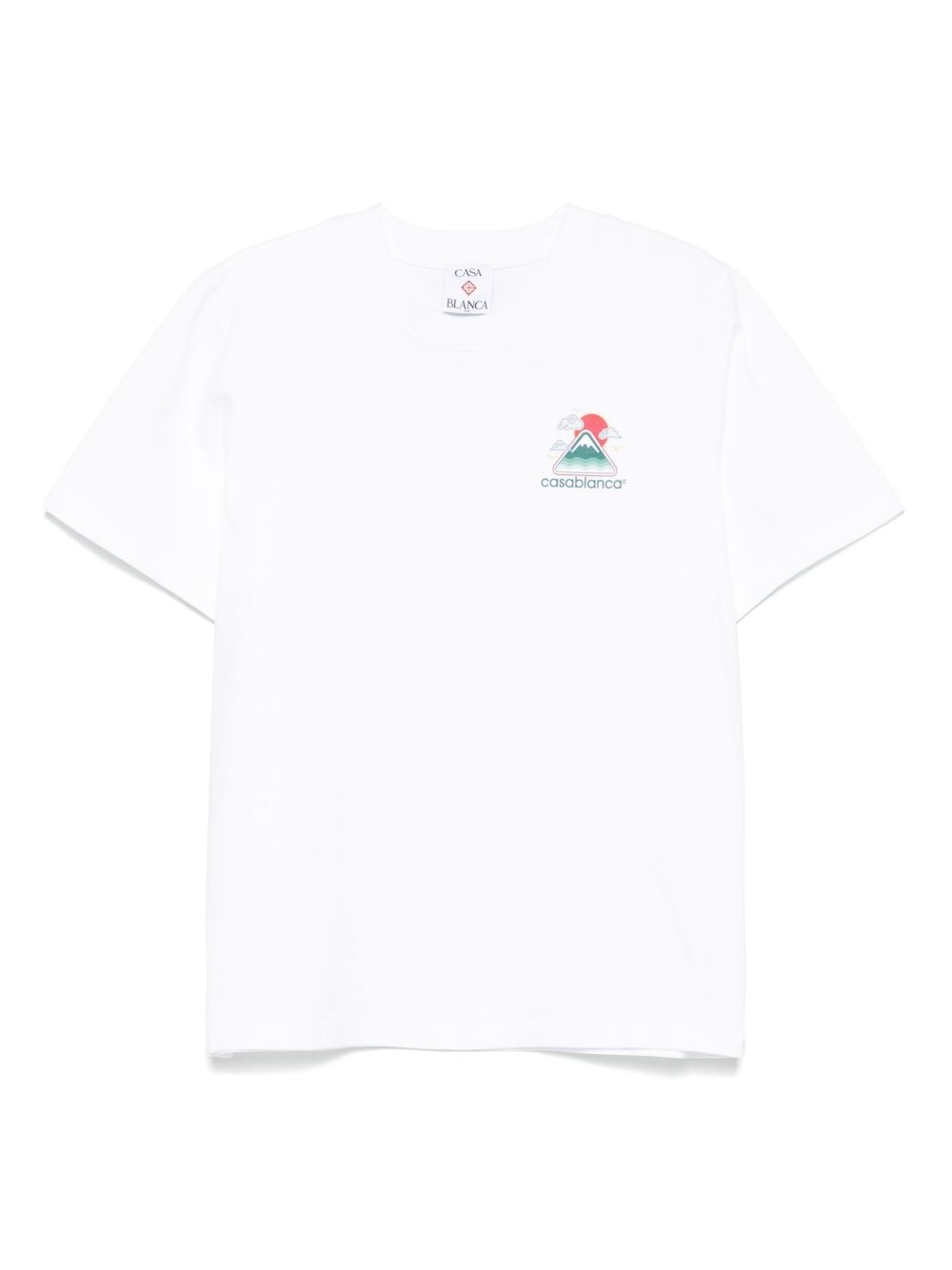 organic-cotton t-shirt Highlights - White - Crew neck - Short sleeves - Straight hem - Graphic print at the chest Imported Composition Organic Cotton 100% SIZE & FIT Model measurements Height 6 ft 2 in(1.88 m) Bust/Chest 37.4 in(95 cm) Hips 38.58 in(98 cm) Waist 31.1 in(79 cm) FittingInformation Designed for a relaxed fit, this piece allows for comfort and movement when worn Made from a midweight non-stretch fabric, this piece offers minimal elasticity when worn Washing instructions Machine Wash