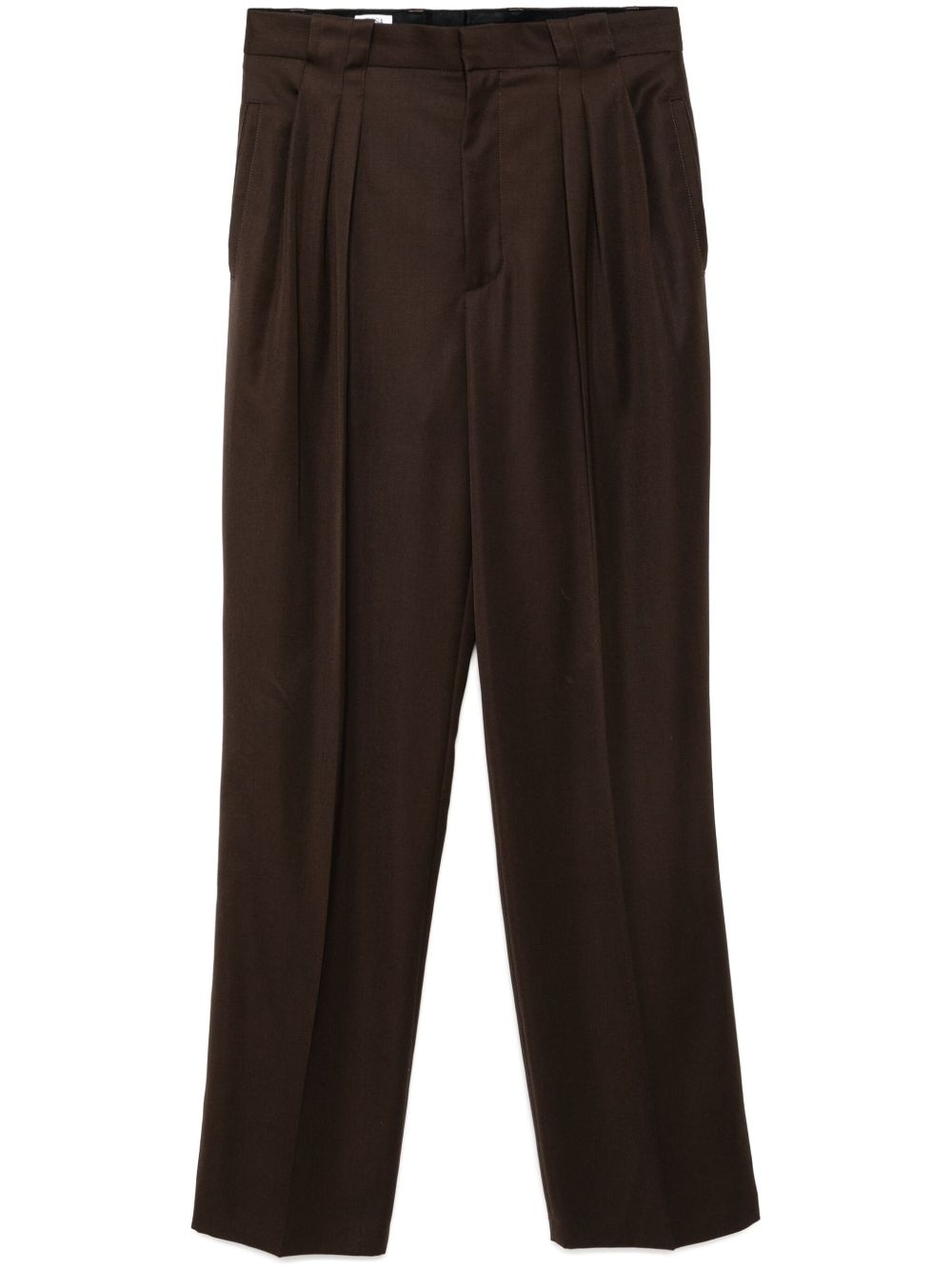 pleated trousers Highlights - Chocolate brown - Front hook and zip fastening - Belt loops - Two side welt pockets Imported Composition Outer: Virgin Wool 100% Lining: Viscose 52%, Cotton 48% SIZE & FIT Model measurements Height 6 ft 2 in(1.88 m) Bust/Chest 34.25 in(87 cm) Hips 34.64 in(88 cm) Waist 26.77 in(68 cm) FittingInformation Designed for a tapered leg, offering a loose unrestricted fit over the leg with a closer fit towards the ankle Made from a midweight non-stretch fabric