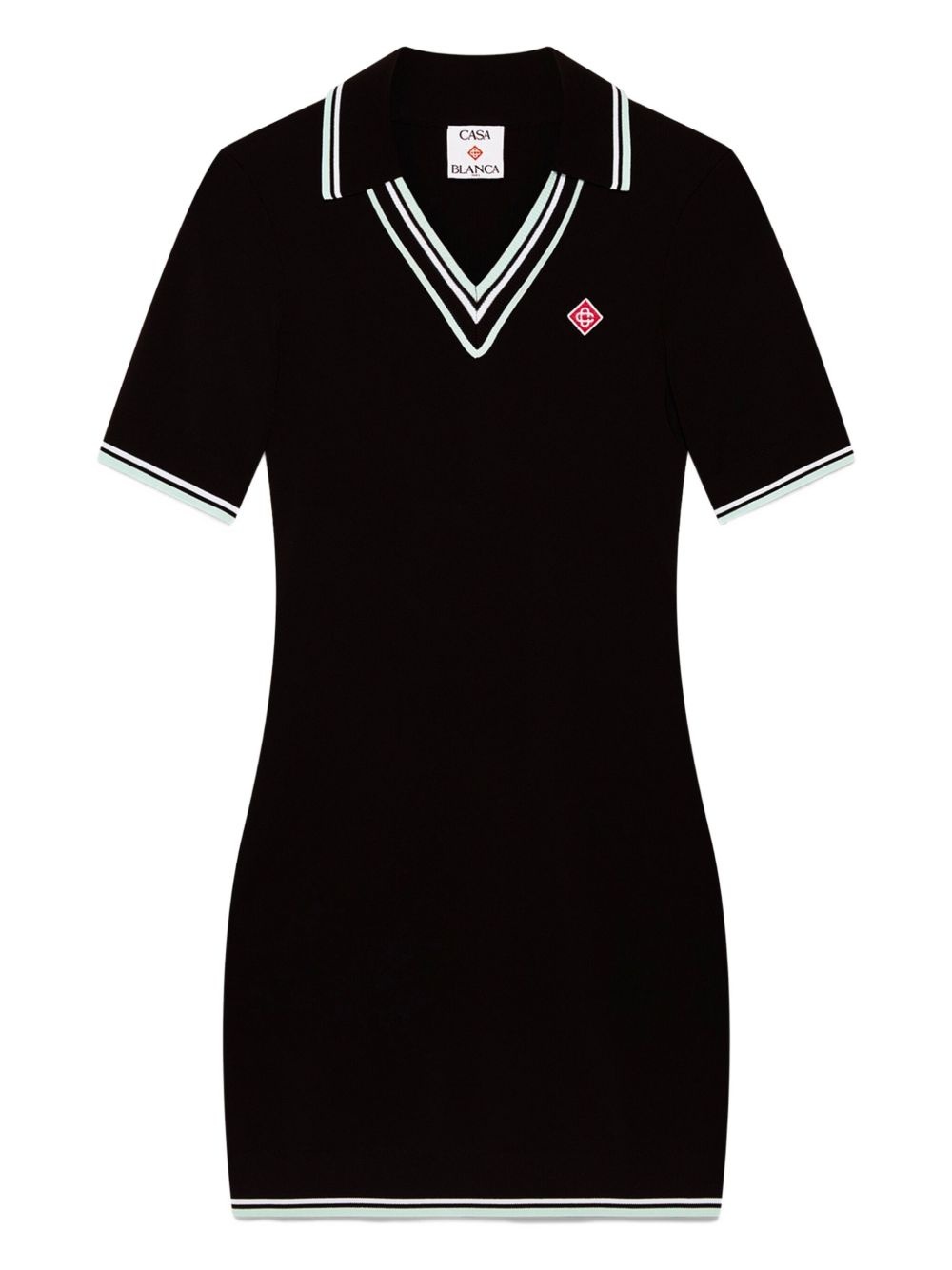 polo-neck ribbed dress Highlights - Black - Short sleeves - Ribbed knit - V-neck - Pale green trim - Small logo Imported Composition Viscose 100% Washing instructions Dry Clean Only