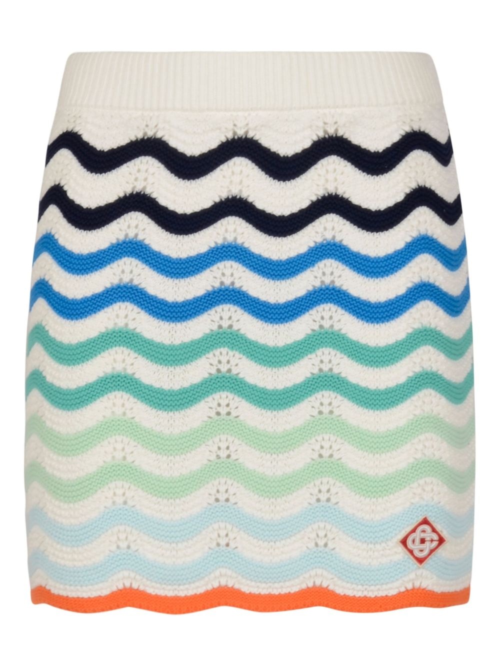 ribbed wave-patterned mini skirt Highlights - Cream white - Wave pattern - Alternating colours - Elasticated waistband - Contrasting hem detail - Breathable knit design Imported Composition Cotton 100%