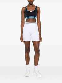seamless sports shorts Highlights - White - Striped - Logo detail - Elasticated hem - Seamless Imported Composition Recycled Nylon 92%, Elastane 6%, Polypropylene 2% SIZE & FIT Model measurements Height 5 ft 10 in(1.78 m) Bust/Chest 31.49 in(80 cm) Hips 37 in(94 cm) Waist 23.62 in(60 cm) Washing instructions Read Manufacturer Guidelines