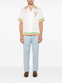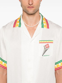 silk monogram-pattern shirt Highlights - White/multicolour - Silk - Satin weave - Monogram pattern - Concealed front button fastening - Leaning collum print to the chest and to the rear - Cuban collar - Short sleeves - Straight hem - When buying this unisex item, keep in mind that it is graded in standard men's sizing. Made in Italy Composition Silk 100% SIZE & FIT Model measurements Height 5 ft 10 in(1.77 m) Bust/Chest 32.28 in(82 cm) Hips 35.03 in(89 cm) Waist 25.19 in(64 cm) FittingInformation This unisex piece is designed for a relaxed fit whether you usually select women's or men's sizes Made from a lightweight non-stretch fabric Washing instructions Dry Clean Only
