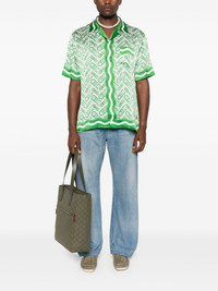 silk shirt Highlights - Green - Camp collar - Chest patch pocket - Short sleeves - All-over graphic print Made in Italy Composition Silk 100% SIZE & FIT Model measurements Height 6 ft 2 in(1.88 m) Bust/Chest 36.61 in(93 cm) Hips 35.82 in(91 cm) Waist 27.95 in(71 cm) FittingInformation Designed for a relaxed fit, this piece allows for comfort and movement when worn Made from a lightweight non-stretch fabric Washing instructions Dry Clean Only