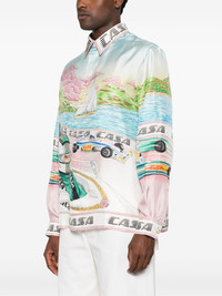 silk shirt Highlights - Pink - Concealed front fastening - Spread collar - Long sleeves - All-over graphic print Made in Italy Composition Silk 100% SIZE & FIT Model measurements Height 6 ft 2 in(1.88 m) Bust/Chest 36.61 in(93 cm) Hips 35.82 in(91 cm) Waist 27.95 in(71 cm) FittingInformation Designed for a relaxed fit, this piece allows for comfort and movement when worn Made from a lightweight non-stretch fabric Washing instructions Dry Clean Only