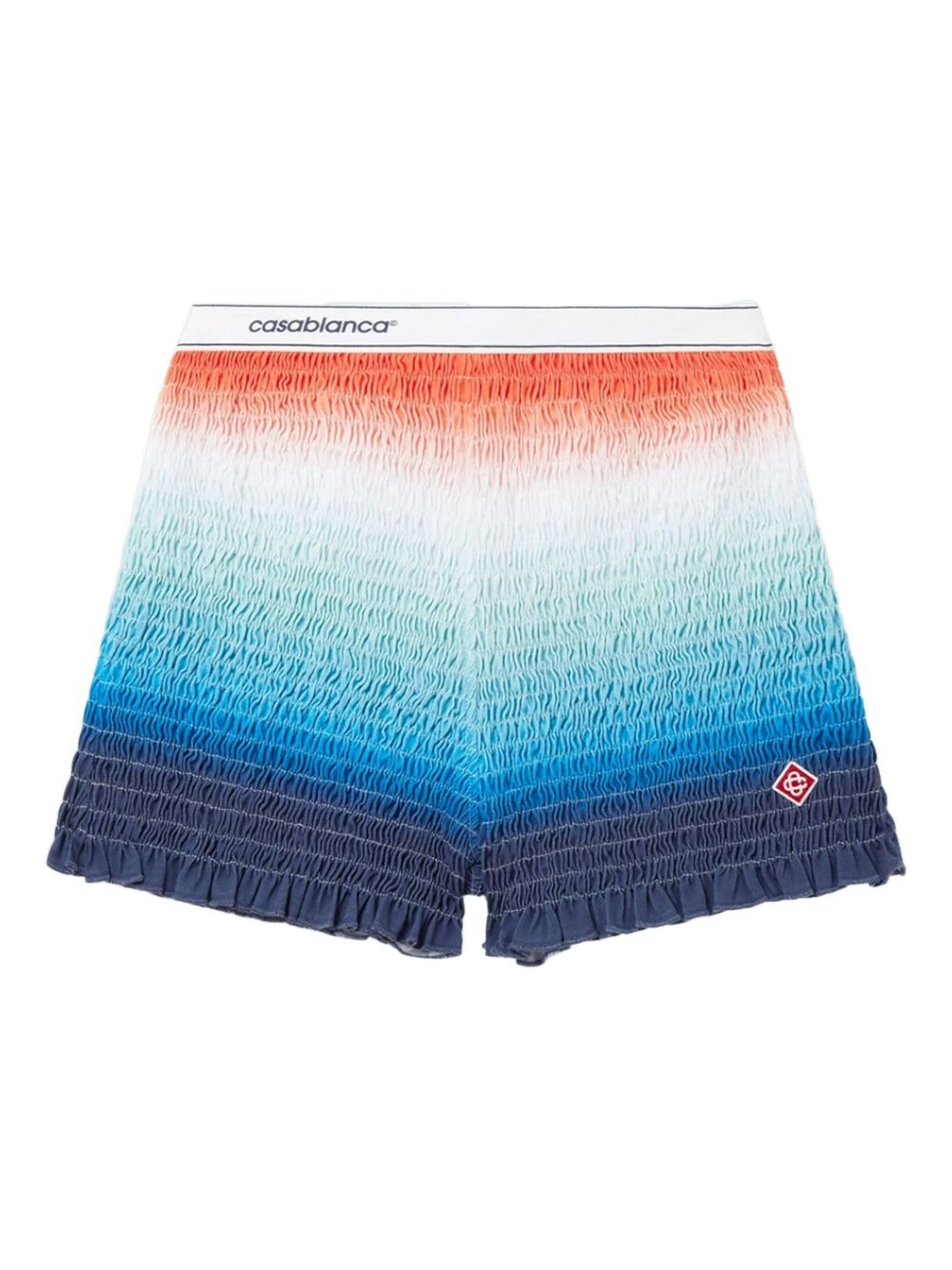 smocked gradient shorts Highlights - Gradient orange to blue - Smocked detailing - Elasticated waistband - Ruffled hem - Lightweight design - Comfortable fit Imported Composition Cotton 100%, Recycled Polyester 95%, Elastane 5% Washing instructions Dry Clean Only
