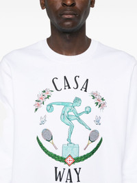 Statue En Marbre embroidered sweatshirt Highlights - White - Organic cotton - Jersey texture - Crew neck - Embroidered logo to the front - Statue en marbre embroidered motif - Long sleeves - Ribbed cuffs and hem - Straight hem - French terry lining Imported Composition Organic Cotton 100%, Polyester 100% SIZE & FIT Model measurements Height 6 ft 2 in(1.89 m) Bust/Chest 34.64 in(88 cm) Hips 39.76 in(101 cm) Waist 29.52 in(75 cm) FittingInformation Designed for a regular fit, offering a comfortable loose fit throughout the body The ribbed hem offers a close, comfortable fit Made from a midweight non-stretch fabric, this piece offers minimal elasticity when worn This piece fits true to size – take your usual size