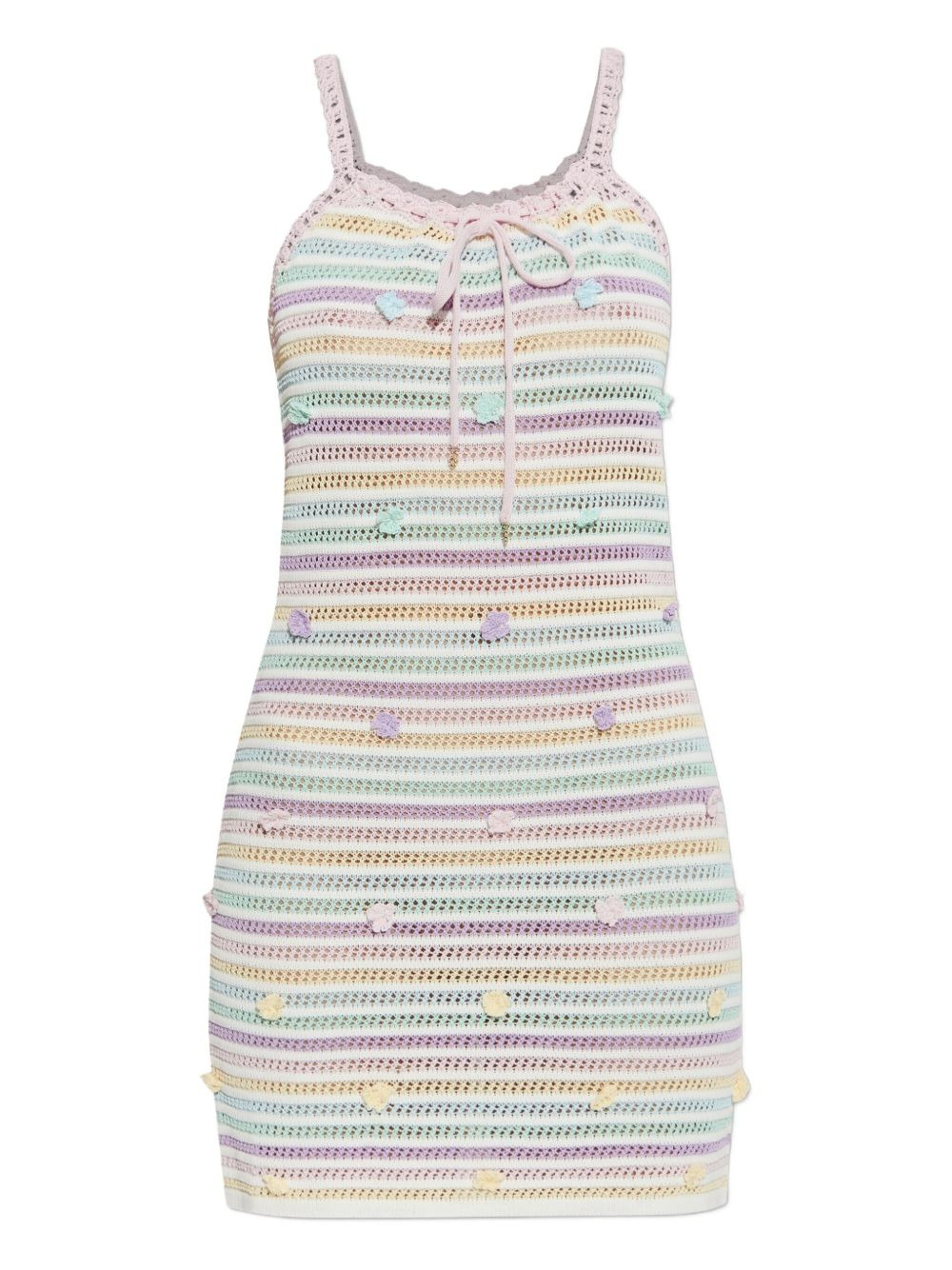 striped crochet-knit mini dress Highlights - White/multicolour - Striped pattern - Crochet knit - Pompom embellishment - Lace-up detailing - Sleeveless Imported Composition Cotton 100% Washing instructions Read Manufacturer Guidelines