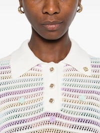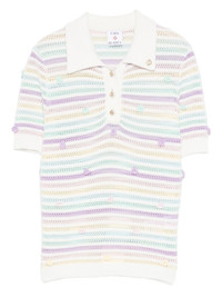 striped crochet polo shirt Highlights - Off-white - Multi-colour stripes - Pom-pom embellishments - Short sleeves - Polo collar - Button fastening Imported Composition Cotton 100% SIZE & FIT Model measurements Height 5 ft 10 in(1.78 m) Bust/Chest 31.49 in(80 cm) Hips 37 in(94 cm) Waist 23.62 in(60 cm) Washing instructions Read Manufacturer Guidelines