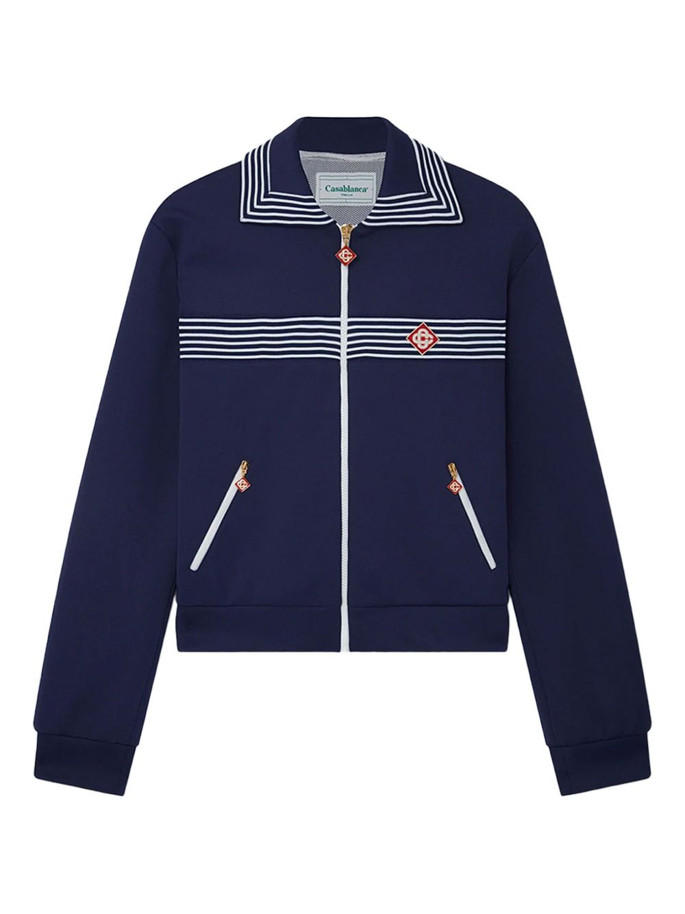 striped-panel jacket Highlights Imported Composition Polyester 53%, Cotton 47%