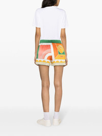 Summer Court silk shorts Highlights - Orange/multicolour - Silk - Satin finish - All-over graphic print - Elasticated waistband - Two side slit pockets - Rear patch pocket - Straight hem - Thigh-length - Full lining Made in Italy Composition Lining: Polyester 100% Outer: Silk 100% Washing instructions Dry Clean Only