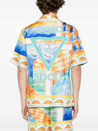 Surreal Pool shirt Highlights - Tangerine orange - Concealed front button fastening - Camp collar - Short sleeves - Logo print to the rear Made in Italy Composition Silk 100% SIZE & FIT Model measurements Height 6 ft 2 in(1.87 m) Bust/Chest 38.97 in(99 cm) Hips 37.99 in(96.5 cm) Waist 29.52 in(75 cm) FittingInformation Designed to be unstructured, offering a loose fit throughout Made from a lightweight non-stretch fabric