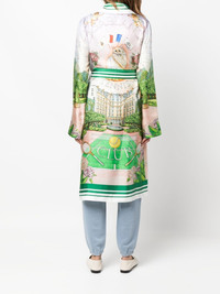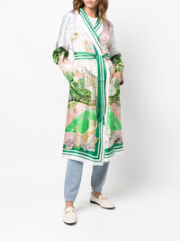Tennis Club belted coat white/multicolour silk all-over graphic print belted waist V-neck long sleeves mid-length straight hem Made in Italy Composition Silk 100% SIZE & FIT Model measurements Height 5 ft 9 in(1.75 m) Bust/Chest 32.67 in(83 cm) Hips 36.22 in(92 cm) Waist 24.8 in(63 cm) FittingInformation This piece fits true to size. We recommend you get your regular size Cut for a loose fit. Comes with an adjustable belt for a flexible fit at the waist Made with a lightweight non-stretch fabric