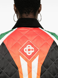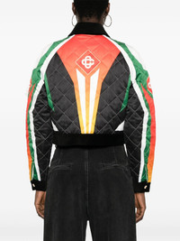 Tennis Club quilted bomber jacket Highlights - Black/multicolour - Satin weave - Diamond quilting - Corduroy trim - Geometric-pattern print - Gradient effect - Logo print to the front - Logo print at the sleeves - Logo print to the rear - Logo-engraved gold-tone hardware - Classic collar - Long raglan sleeves with press-stud fastening cuffs - Slip pockets to the sides - Front press-stud fastening - Straight hem - Cotton lining Made in Italy Composition Cotton 100% Outer: Polyester 100% SIZE & FIT Model measurements Height 5 ft 11 in(1.8 m) Bust/Chest 32.67 in(83 cm) Hips 36.22 in(92 cm) Waist 24.4 in(62 cm) FittingInformation Designed for a boxy fit, intended for a loose fit throughout Made from a quilted non-stretch fabric, giving it no natural elasticity This piece fits true to size – take your usual size