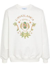 Tennis Club sweatshirt Casablanca's Tennis Club sweatshirt showcases the brand's sportswear-inspired aesthetic. Cut from organic cotton, it's decorated with one of the label's signature graphic prints that pops against the white background. Highlights - White - Organic cotton - Jersey texture - Logo print to the front - Crew neck - Long sleeves - Ribbed cuffs and hem - Straight hem - French terry lining Imported Composition Organic Cotton 100% SIZE & FIT Model measurements Height 6 ft 2 in(1.89 m) Bust/Chest 39.76 in(101 cm) Hips 37.4 in(95 cm) Waist 29.92 in(76 cm) FittingInformation Designed for a regular fit, offering a comfortable loose fit throughout the body Made from a midweight non-stretch fabric, this piece offers minimal elasticity when worn This piece fits true to size – take your usual size Measurement CHEST 44.01 in(111.8 cm) SLEEVE LENGTH 25.98 in(66 cm) LENGTH 25.98 in(66 cm) WAIST 44.01 in(111.8 cm) Shoulder Width 16.53 in(42 cm)