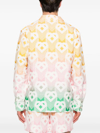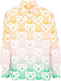 terrycloth-effect shirt jacket Casablanca's shirt jacket is distinguished by its gradient effect design that's detailed with a monogram print. Highlights - Yellow/multicolour - Terry-cloth effect monogram - Gradient effect - Pointed flat collar - Long sleeves - Buttoned-cuff sleeves - Chest patch pocket - Straight hem - Front button fastening Imported Composition Cotton 31%, Viscose 22%, Nylon 21%, Polyester 14%, Recycled Polyester 11%, Elastane 1% SIZE & FIT Model measurements Height 6 ft 2 in(1.87 m) Bust/Chest 37.79 in(96 cm) Hips 37.79 in(96 cm) Waist 30.31 in(77 cm) FittingInformation Designed to be unstructured, offering a loose fit throughout Made from a midweight fabric This piece fits true to size – take your usual size Washing instructions Dry Clean Only