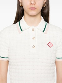 textured-knit polo dress Highlights - White - Textured knit - Short sleeves - Button fastening - Embroidered logo - Ribbed trims Imported Composition Viscose 95%, Cotton 79%, Nylon 20%, Polyester 5%, Elastane 1% SIZE & FIT Model measurements Height 5 ft 10 in(1.78 m) Bust/Chest 33.85 in(86 cm) Hips 36.61 in(93 cm) Waist 26.77 in(68 cm) Washing instructions Hand Wash